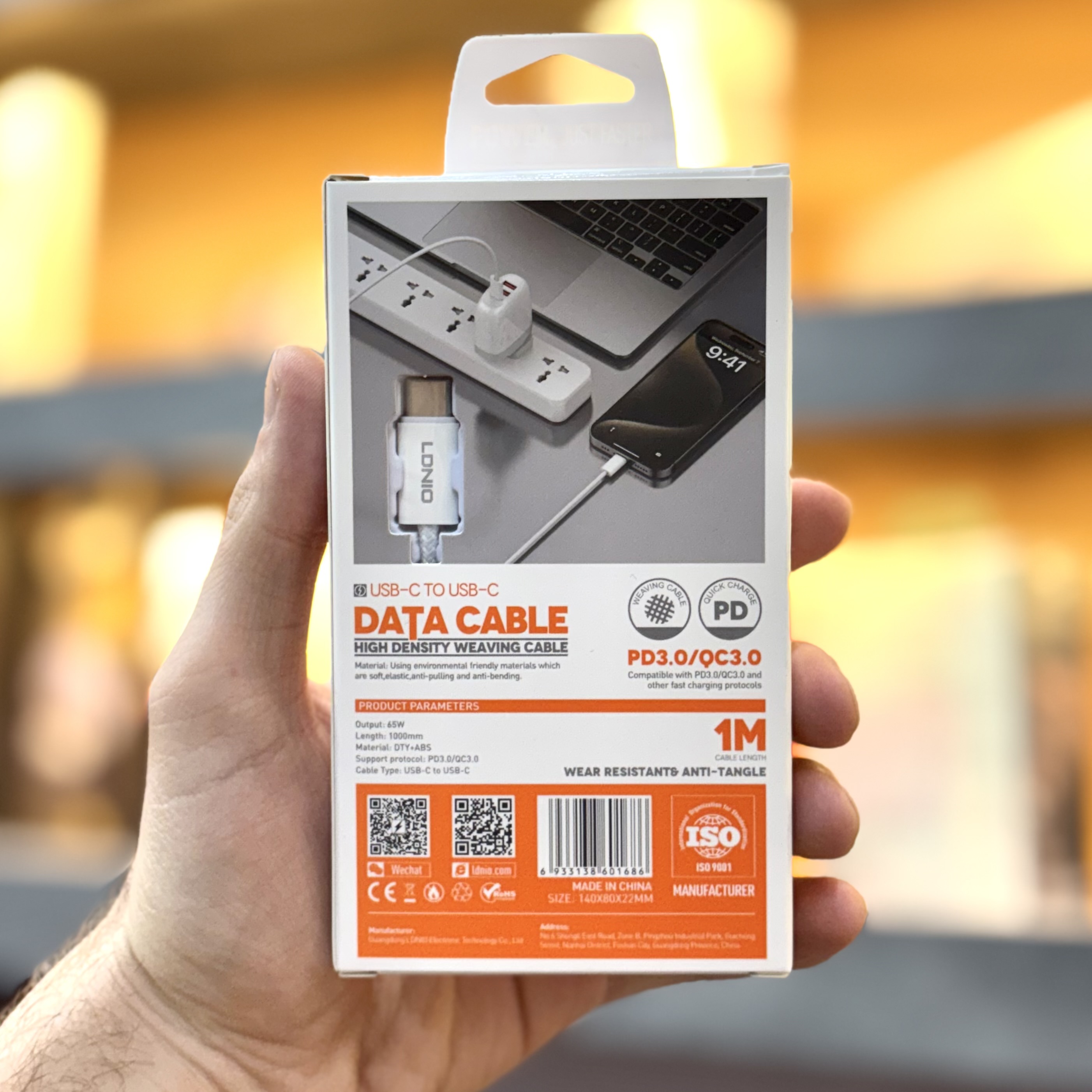 کابل LDNIO LC901c یک کابل USB-C به USB-C با کیفیت ساخت بالا است که از شارژ سریع 65 وات پشتیبانی میکند. این کابل با تکنولوژیهای PD 3.0 و QC 3.0 سازگار بوده و گزینهای ایدهآل برای انواع دستگاههای مجهز به درگاه USB-C محسوب میشود.